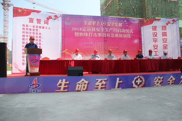 在現場活動中,定遠項目公司副總工程師傅吉祥發言表示,將按照省委省政府關于“2018年安徽省安全生產月和安全生產江淮行活動方案”的工作決策部署,突出“生命至上、安全發展”主題,圍繞推進安全生產“鑄安”行動常態化實效化和“六項機制”制度化規范化,嚴格監督管理,明確責任、落實責任,創新活動形式,通過開展宣教活動,進一步樹立紅線意識,加強安全法治宣傳,落實安全主體責任,普及安全知識,全面提升員工安全素質,確保安全生產局面的持續穩定,為建設大愛定遠、大美定遠而奮斗。