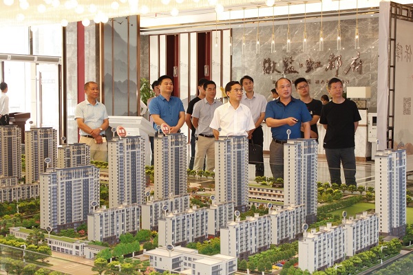 王思軍一行參觀了徽鹽虹都府營銷中心并深入項目現場進行實地考察,對施工人員進行慰問,聽取了施工管理人員的介紹,對項目的現場管理、施工質量和安全工作給予了充分肯定。