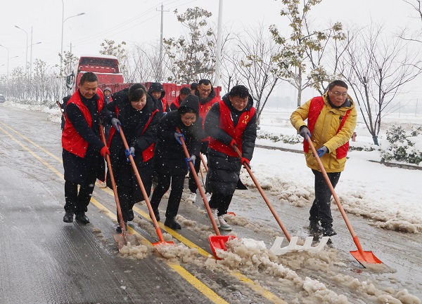 近日,受強冷空氣影響,霍邱縣迎來了連續雨雪天氣,縣城道路出現積雪、結冰現象,給人民群眾出行帶來了安全隱患。2月4日,霍邱項目黨支部積極響應屬地新店鎮黨委號召,組織黨員志愿者開展了“掃雪除冰暖人心 白雪更映志愿紅”黨員志愿服務活動,采取以機械作業為主,人工清雪為輔的方式,開展掃雪除冰、疏通道路等工作,全力保障人民群眾安全出行,以實際行動彰顯國企擔當。